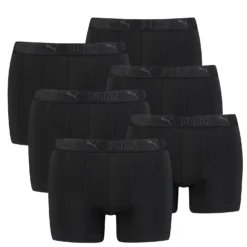 6er Pack PUMA Herren Mikrofaser Boxershorts mit PUMA-Logo und -Schriftzug auf dem Bündchen. Sehr leicht, schnell trocknend und komfortable: Diese Mikrofaser-Boxershorts von PUMA bestehen aus recycelten Materialien und wurden so gestaltet, dass du den ganzen Tag lang dein Bestes geben kannst – sowohl beim Sport als auch im Alltag. Dank der ergonomischen Passform, die jeden Tag aufs Neue den ganzen Tag über hochwertigen Komfort bietet, spürst du absolut keine Einschränkungen.