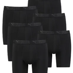 6er Pack PUMA Herren Mikrofaser Boxershorts mit PUMA-Logo und -Schriftzug auf dem Bündchen. Sehr leicht, schnell trocknend und komfortable: Diese Mikrofaser-Boxershorts von PUMA bestehen aus recycelten Materialien und wurden so gestaltet, dass du den ganzen Tag lang dein Bestes geben kannst – sowohl beim Sport als auch im Alltag. Dank der ergonomischen Passform und dem extra langen Design, die jeden Tag aufs Neue den ganzen Tag über hochwertigen Komfort bietet, spürst du absolut keine Einschränkungen.
