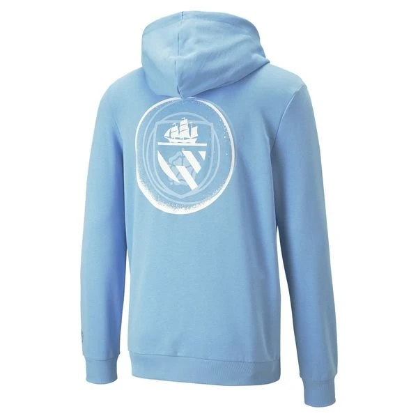 Bekenne Farbe und unterstütze den Man City und seine bewegte Geschichte mit diesem ftblLegacy Hoodie. Das Design hat PUMA und Man City Brandings auf der Vorderseite und einen großen Grafikprint am Rücken.